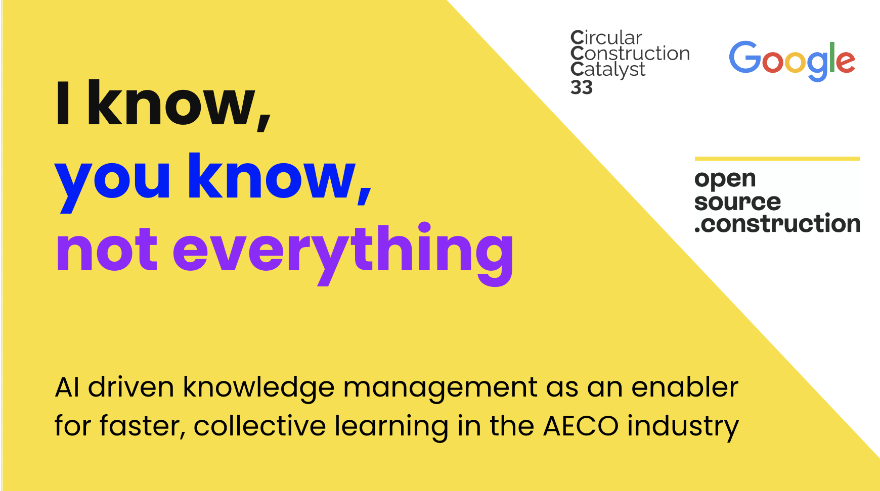 When it comes to making knowledge accessible, human to human interaction still plays an important role. In his input, Maximilian Vomhof from opensource.construction and Kira Kulik from C33 will look into the social engineering behind successful Q&A platforms such as Stack Overflow and Reddit, two of the most visited websites on the internet, to find out why people share knowledge publicly. An intro to the "Circular Construction Co-Pilot" project shows how these successful mechanisms can be made accessible for people in the real estate and construction industry as well.